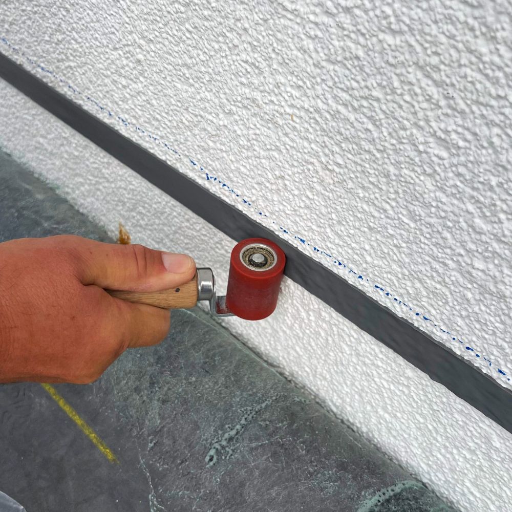 Heeft u moeite met het creëren van een nette muuraansluiting? Vaak ontstaan er problemen op het gebied van de wandaansluiting en dergelijke als gevolg van oneffenheden of driedimensionale vormen. Veel afdichtingsproducten worden mechanisch geperst met behulp van een dopstrip en afgedicht met siliconen. Naast het optische aspect kent deze praktijk ook veel problemen: geen elasticiteit voor trek- en schuifkrachten, geen langdurige UV-bestendigheid & geen vervormbaarheid.
