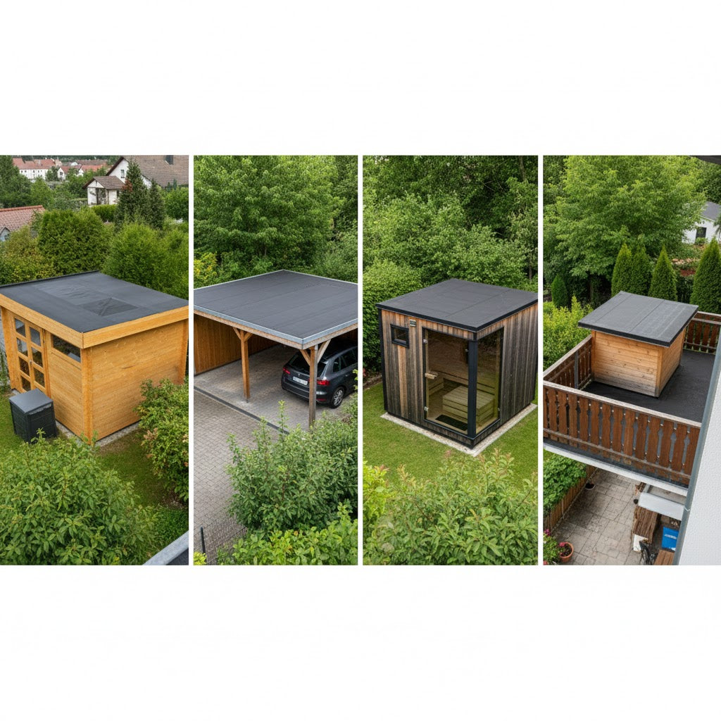 Die HSS EPDM Dachfolie EasyStick ist eine modifizierte EPDM Dachfolie für den Einsatz bei verschiedensten Bauobjekten. Ob Gartenhaus, Carport, Außensauna oder Gerätekammer, jedes Objekt kann sicher und langfristig abgedichtet werden.
