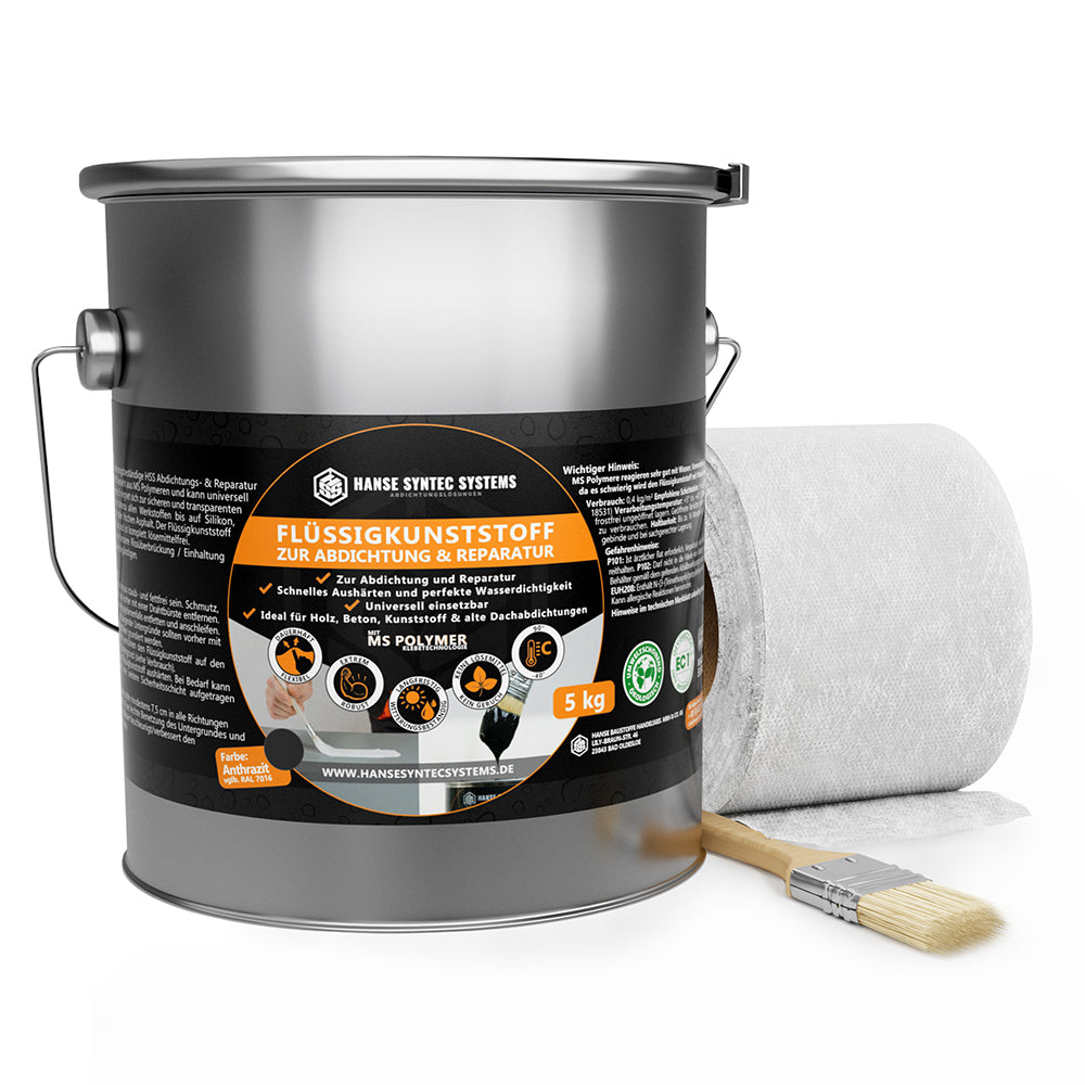5Kg Dose Flüssigkunststoff, 1 Pinsel 38mm Breite, 1 Stück Verstärkungsvlies 100cm x 500cm